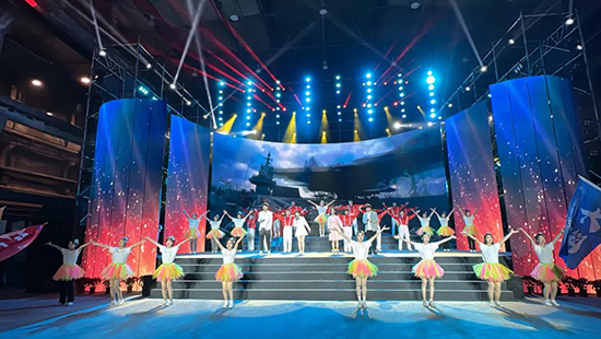 闭幕式在流光溢彩的灯光秀中拉开帷幕,到场领导、嘉宾及获奖选手共同收看了舞蹈表演《奋斗的你了不起》,回顾了大赛的精彩瞬间。大合唱《强国一代有我在》将大赛闭幕式推向高潮,最后交接了赛旗,约定两年后在美丽的大连“再决战”。