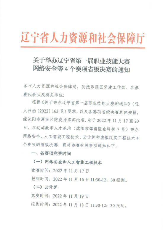 关于举办辽宁省第一届职业技能大赛网络安全等4个赛项省级决赛的通知