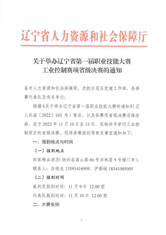 关于举办辽宁省第一届职业技能大赛工业控制赛项省级决赛的通知