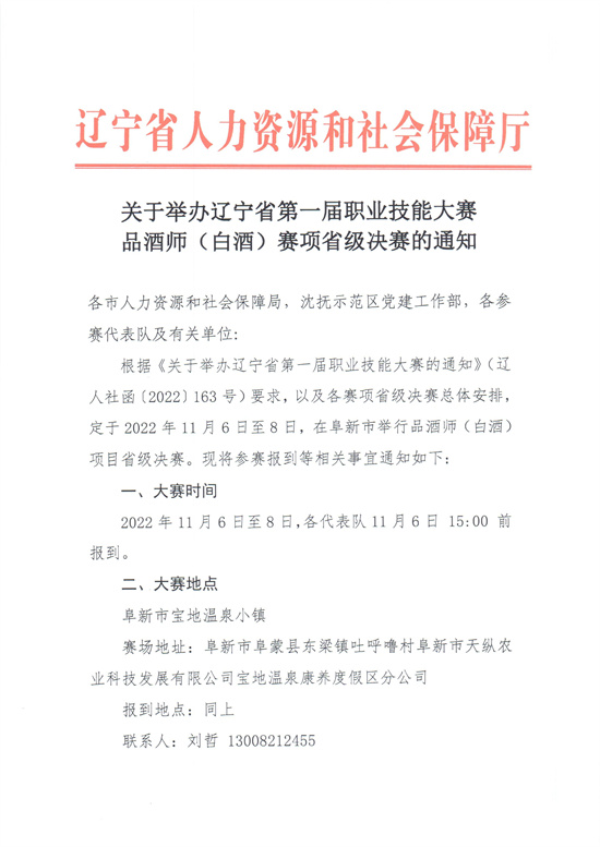关于举办辽宁省第一届职业技能大赛品酒师(白酒)赛项决赛的通知