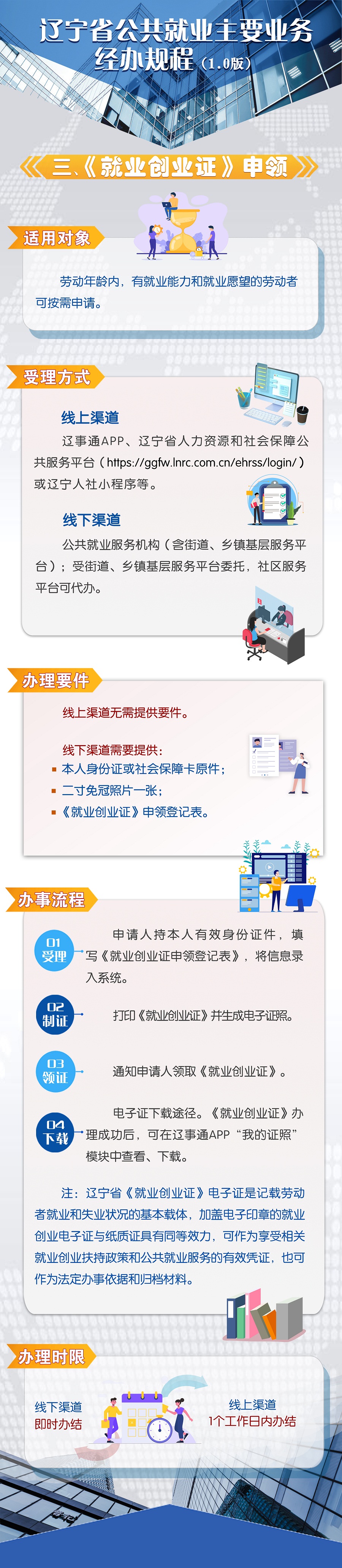 辽宁省公共就业主要业务经办规程(1.0版)-- 失业登记、《就业创业证》申领、就业困难人员和参照就业困难人员享受相关政策人员认定