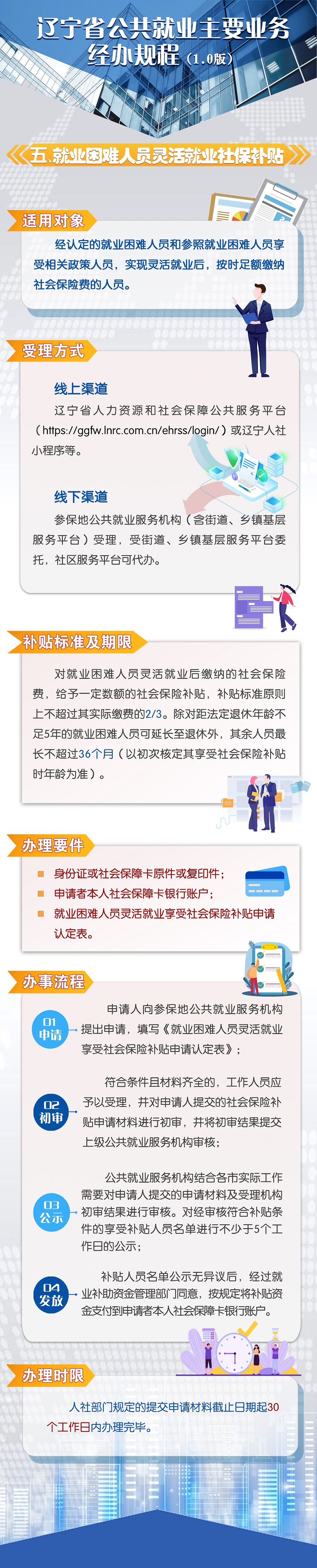 辽宁省公共就业主要业务经办规程(1.0版)-- 就业困难人员灵活就业社保补贴、高校毕业生灵活就业社保补贴、用人单位吸纳就业困难人员社会保险、岗位补贴、用人单位吸纳高校毕业生社保补贴、困难家庭高校毕业生申请认定
