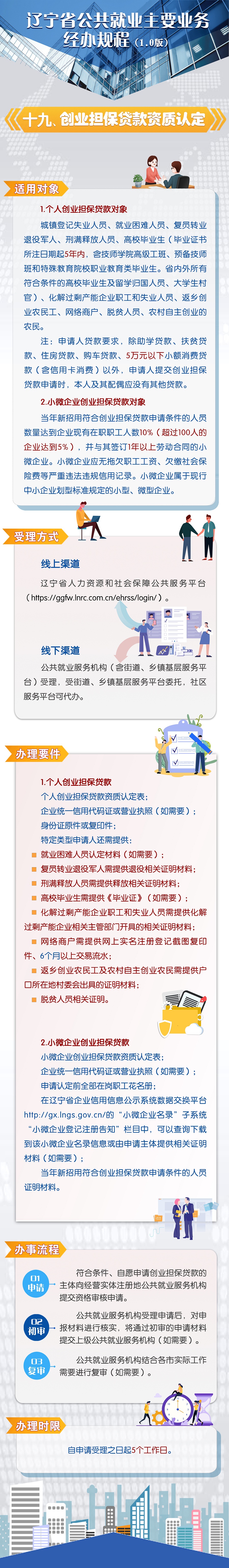 辽宁省公共就业主要业务经办规程(1.0版)-- 一次性创业补贴、创业担保贷款资质认定、创业孵化基地(园区)申报管理