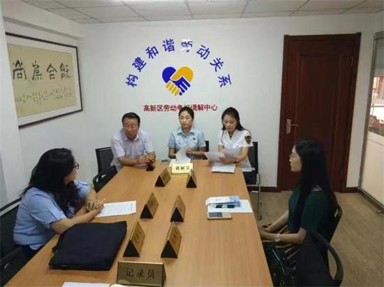 大连高新区劳动争议调解中心成立于2017年,由区总工会、区人社局和区法院联合建立。调解中心设立调解窗口和咨询热线,配备了培训室、调解室和档案室等业务空间,总工会、仲裁院和法院的工作人员及律师组成调解员队伍。大连高新区通过积极构建“工会+仲裁+法院”联合调处劳资纠纷的新模式,推进“调裁审”工作无缝链接,向单位人事、职工、农民工等群体提供业务咨询、线上调解、法律援助和仲裁确认等一站式服务,发挥了调解组织第一道防线作用,实现了协商、调解、仲裁、诉讼相互协调、有序衔接的劳动人事争议多元化处理格局。调解中心成立至2021年底,共受理线上线下劳动争议纠纷案件385件,成功调解279件,调解成功率72.5%,累计为职工挽回各项权益461万元。