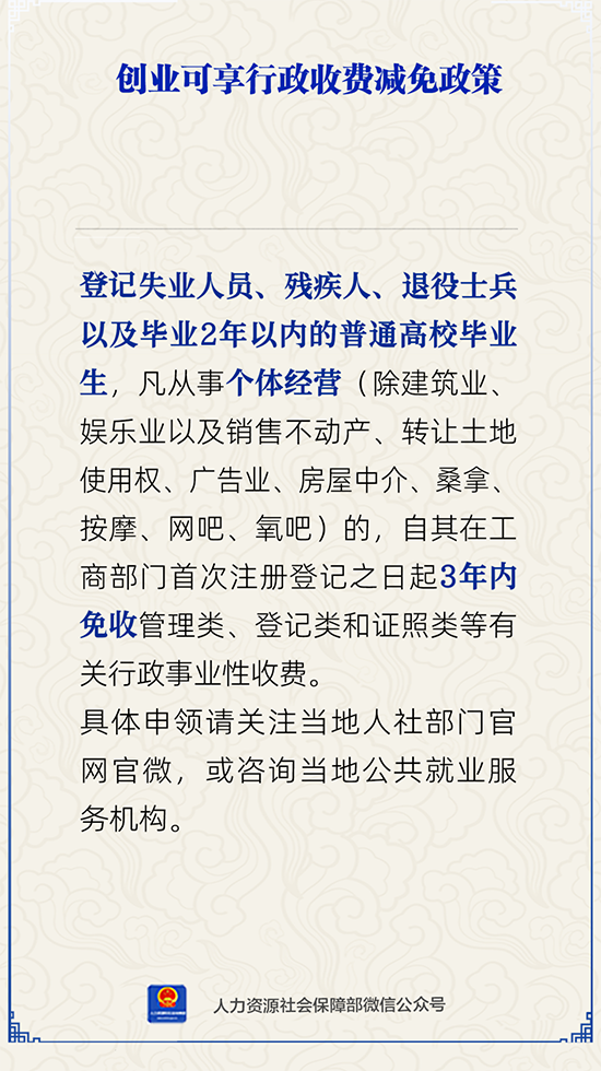 创业可享行政收费减免政策