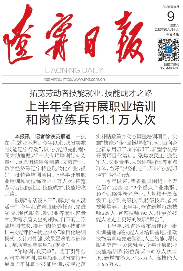发布时间:2025年08月14日 编辑:省人社厅吴粤 来源:辽宁日报