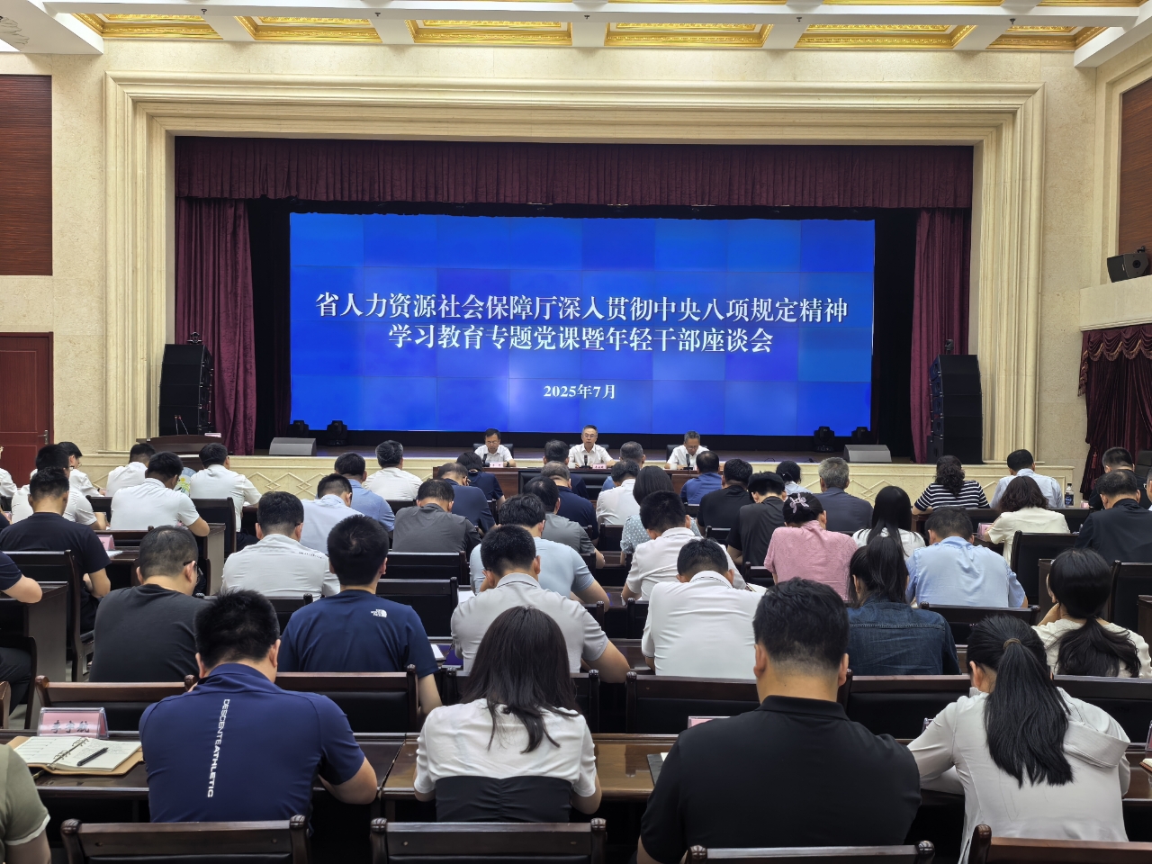 省人力资源社会保障厅举办深入贯彻中央八项规定精神学习教育专题党课暨年轻干部座谈会